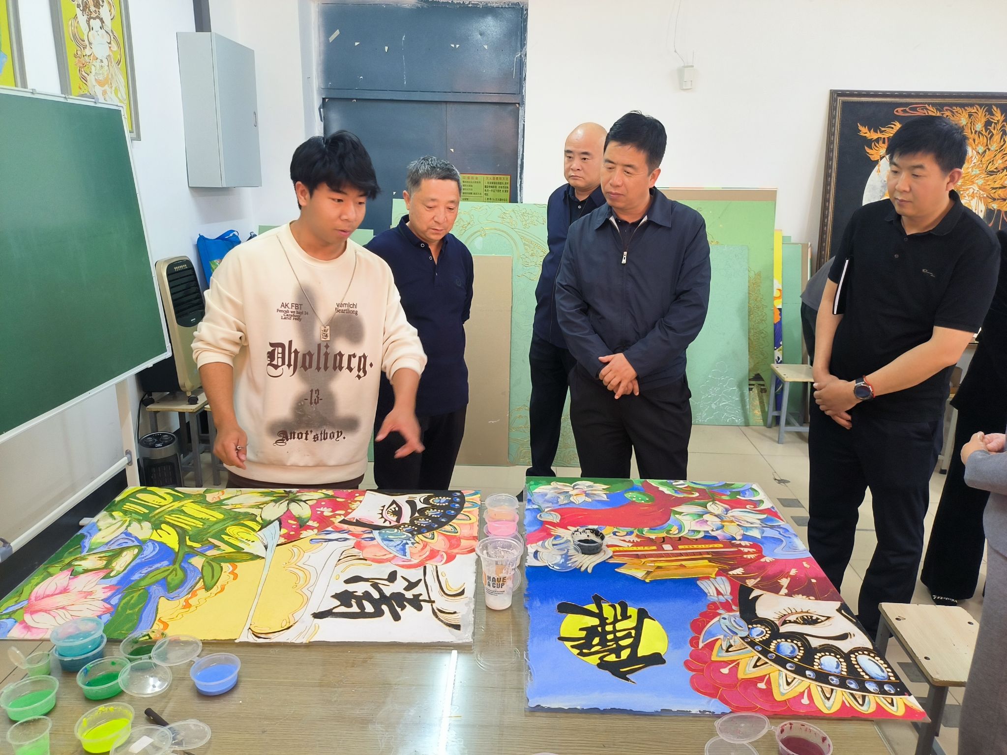 蒋鸣一行实地调研了“共绘清风、廉润校园”艺术创作课堂,现场观摩了学生关于“廉洁”主题掐丝珐琅画创作,对创作作品给予了高度评价并提出了建议,一要进一步丰富创作的主题、范畴,结合我国传统文化中的廉洁人物、廉洁故事,形成专题类作品;二要进一步加大宣传力度,让更多师生走进环艺创作课堂,参与廉洁艺术作品创作实践;三要在这一实践中引导师生讲廉宣廉,崇廉尚洁,助力“清廉学校”建设。