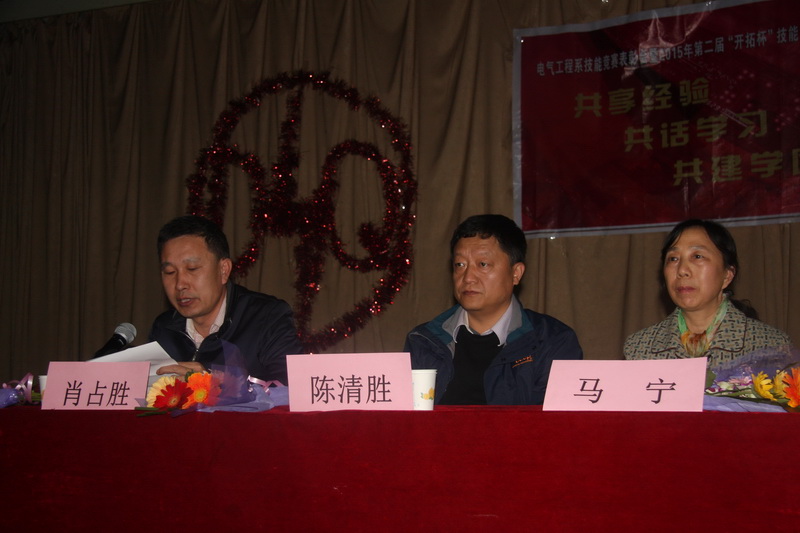 最后,由副院长陈清胜、副主任肖战胜分别为大会作了总结。“走高职特色道路,以质量立校为基础”结合我系历年来获得的荣誉及先进的专业设备资源特色,对新一届电气学子提出了殷切的期望,力求再创佳绩!随后,在同学们的掌声中由副院长陈清胜宣布第二届“开拓杯”技能竞赛开幕,大会至此圆满结束。